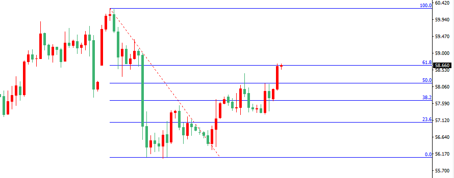 技術面看,油價至前期W底突破之後持續打開上方空間,目前已經開始測試7月1日下跌以來黃金分割61.8位置,建議58.6繼續開多,止損58.3,上看59.9美元。