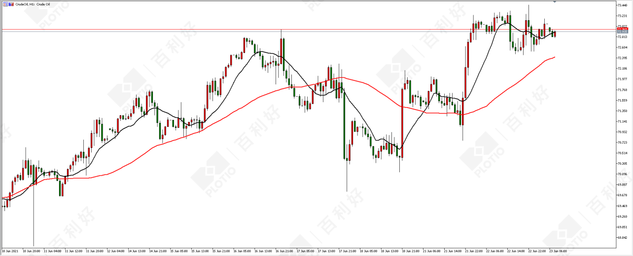 技術面:原油昨日收盤陽十字星,在週一(6月21日)大漲過後進入高位整理。觀察過去20多個交易日油價走勢可以得出,“漲二退一”是主要特徵,因此在操作上切忌追漲殺跌,逢低做多的主思路不變。上方壓力74美元,下方支撐72美元。