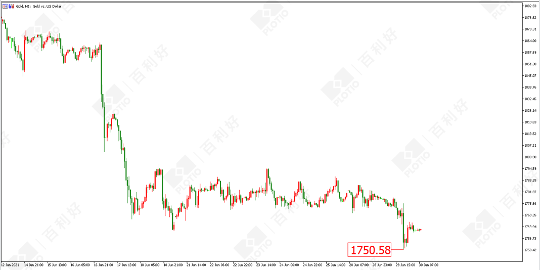 黃金方面:昨日(6月29日)晚間,黃金打破了維持了一周的1772-1794美元區間震盪,短線快速下挫至1750美元的位置。